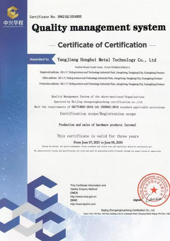 廣東宏惠金屬公司是家20多年一直專注鉆尾螺絲開發(fā)與生產(chǎn)的企業(yè),是國內(nèi)較早做鉆尾的廠家之一,同時也是國內(nèi)專業(yè)開發(fā)生產(chǎn)鉆尾螺絲的企業(yè)之一。 我司地址為于廣東省陽江市江銀嶺科技園距沈海高速白沙出口不到2公里,距陽江高鐵站也只有十余公里交通便利。 公司占地120畝,擁有超500臺套專業(yè)設(shè)計 生產(chǎn) 檢測設(shè)備。一個超200人的專業(yè)團(tuán)隊,能夠嚴(yán)格按照ISO9001質(zhì)量體系要求生產(chǎn)符合GB DIN AS3566 ANSI JIS BS等標(biāo)準(zhǔn)的產(chǎn)品,生產(chǎn)銷售各種高品質(zhì)緊固件系列產(chǎn)品,為中高端客戶提供優(yōu)質(zhì)服務(wù)。也可按照客戶要求設(shè)計生產(chǎn)各種鉆尾,年產(chǎn)高品質(zhì)碳鋼 不銹鋼鉆尾螺絲2萬余噸.在各大客戶的鼎力支持下產(chǎn)品暢銷全國,并遠(yuǎn)銷亞 非 拉 歐等地,在這20多年發(fā)展的道路上我司堅持“以質(zhì)量求生存,以信譽(yù)求發(fā)展”的精神理念不斷完善公司體系。